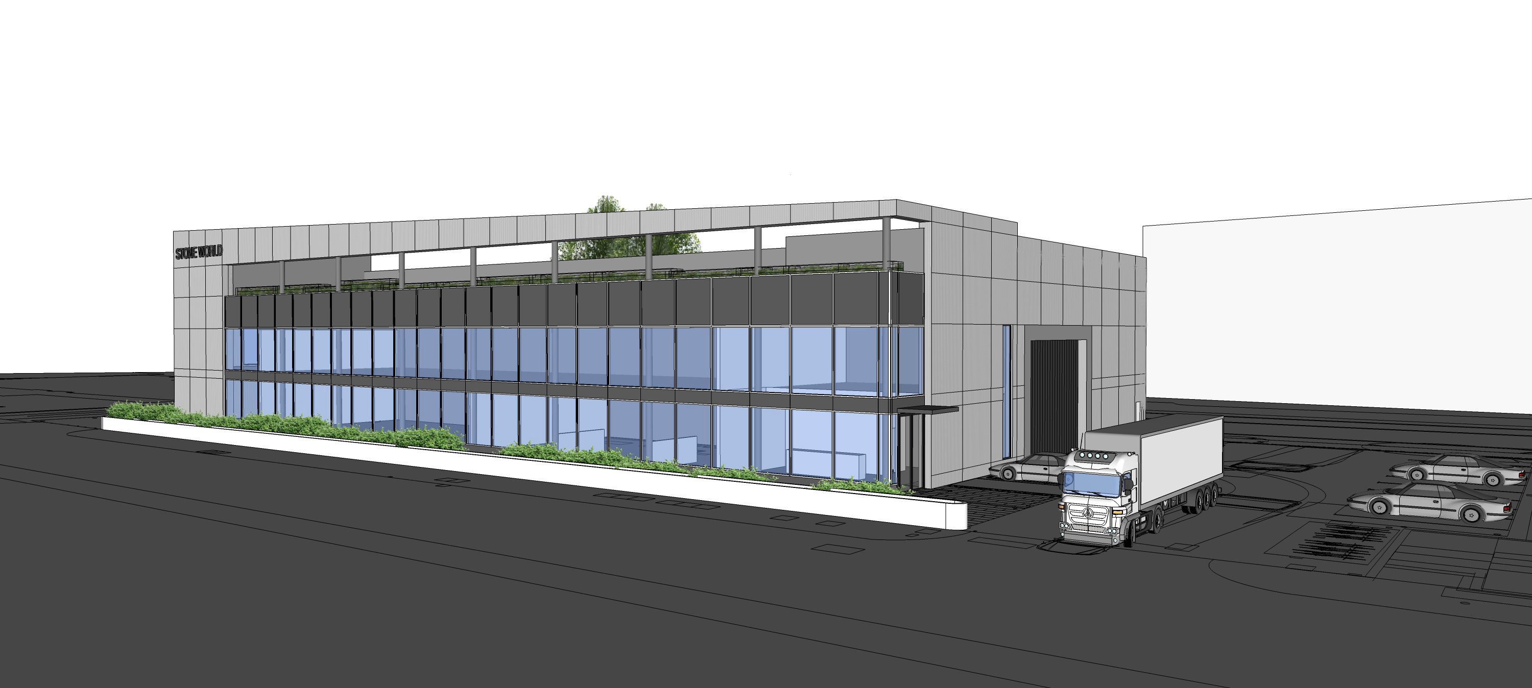 Part two, part three-storey showroom and warehouse with associated on-site parking and servicing